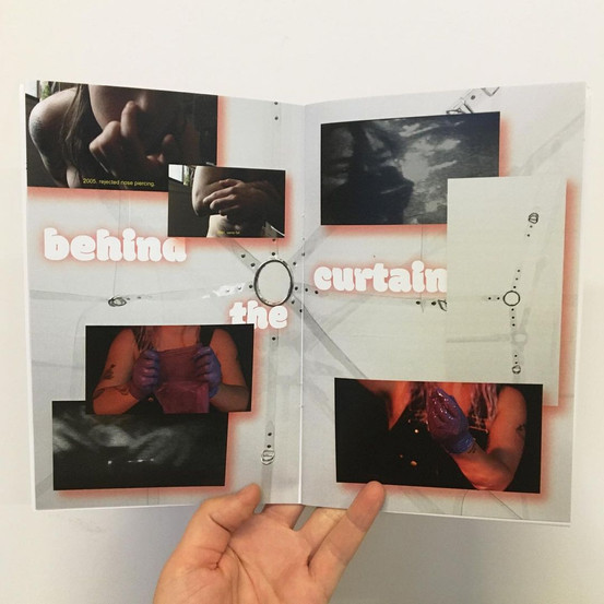 Tonight's queer art feature is the "behind the curtain" cultivated by Morgan Sears-Williams with publication design by Lina Wu.
